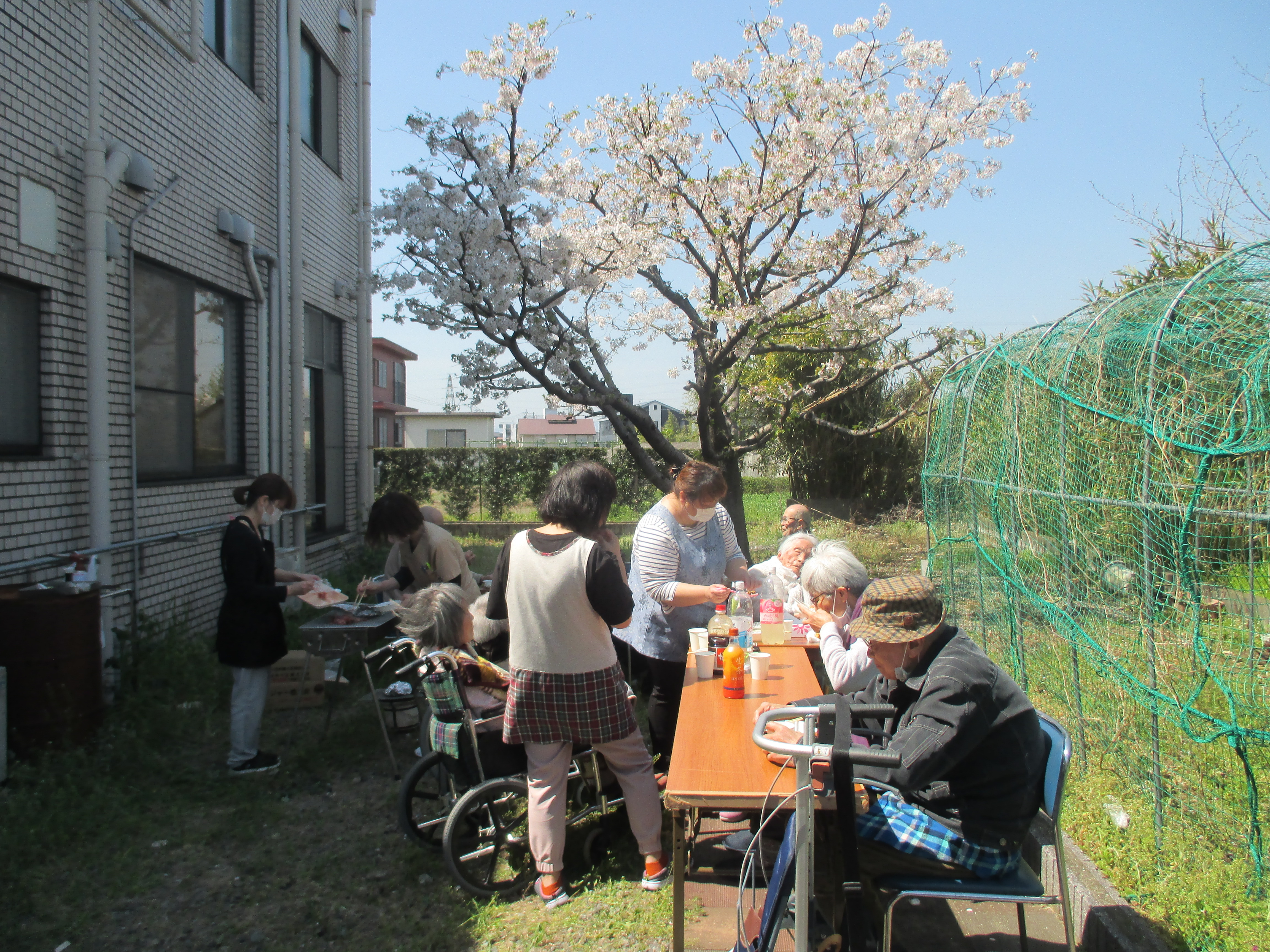 ☆BBQ(花見)☆ 悠ホームスタッフブログ, 未分類 2021年3月26日コロナの影響で、外出行事ができませんが悠ホームのウラの桜が今年もキレイに咲いたので桜を見ながらのBBQ(バーベキュー)をしました。焼かれた肉や野菜がお皿に取り分けられると利用者様は『美味しかね』と言って食べてくださりました。スタッフもBBQの火おこしが三回目なので火おこしのレベルが上がっていました。