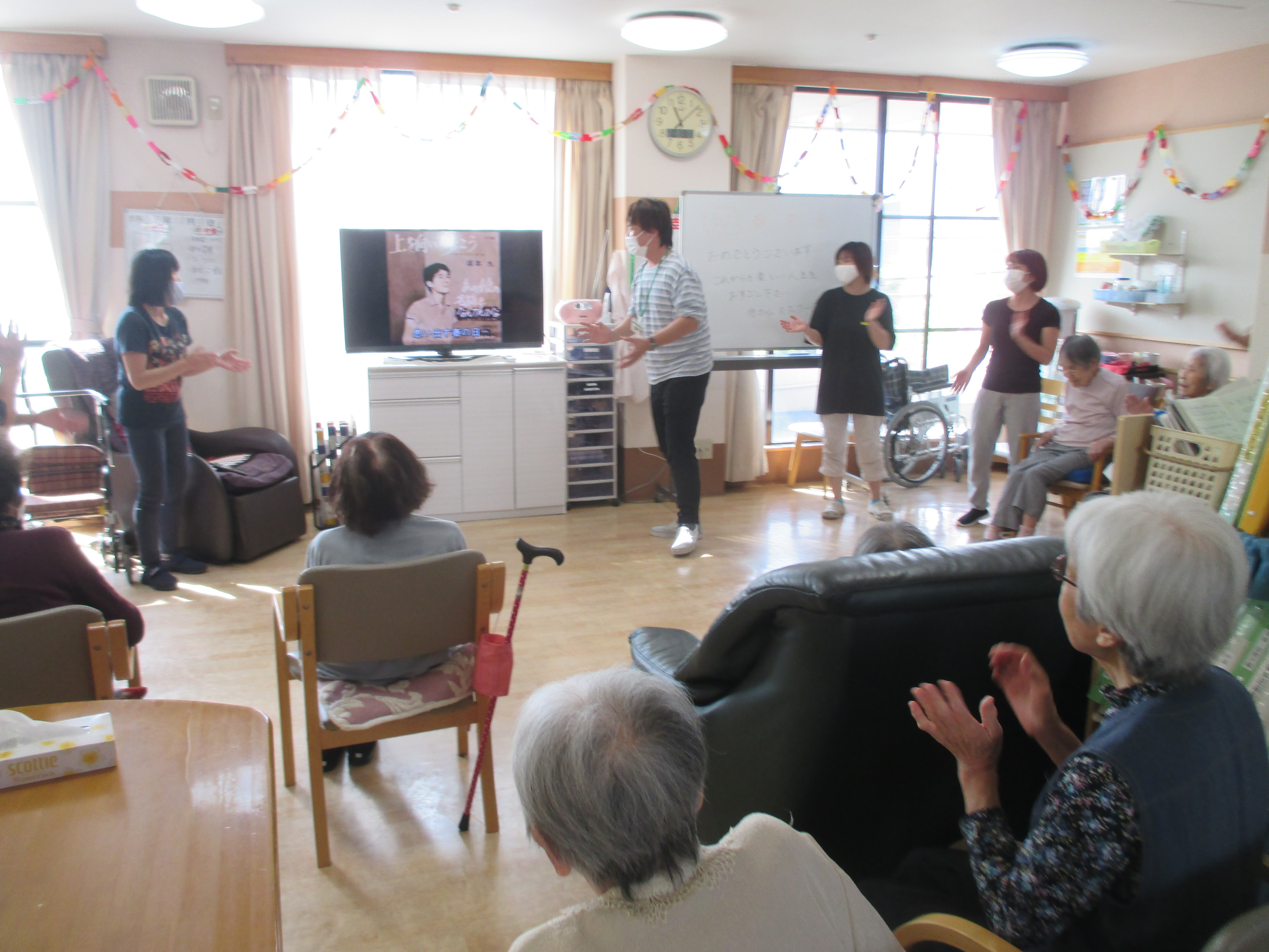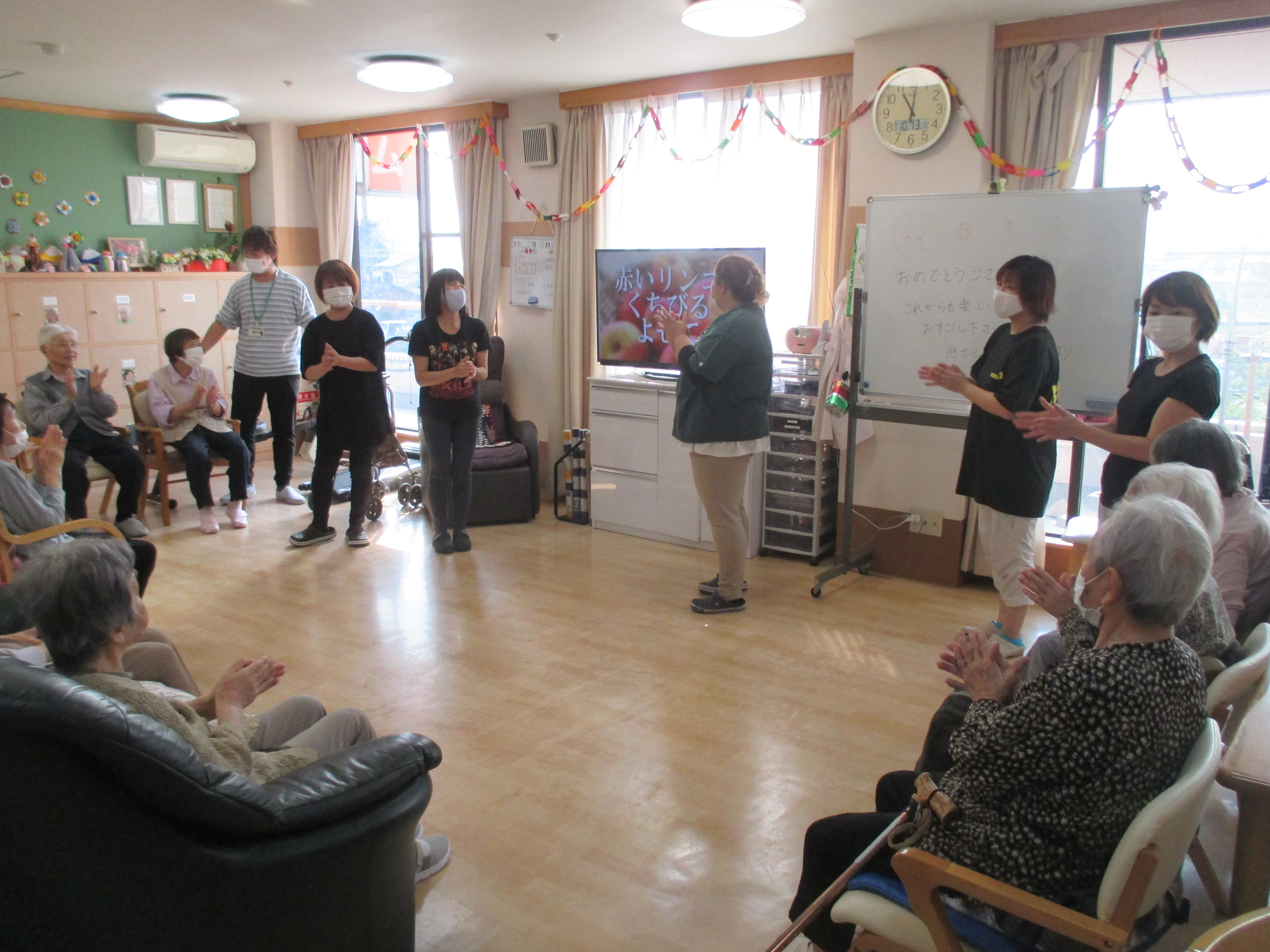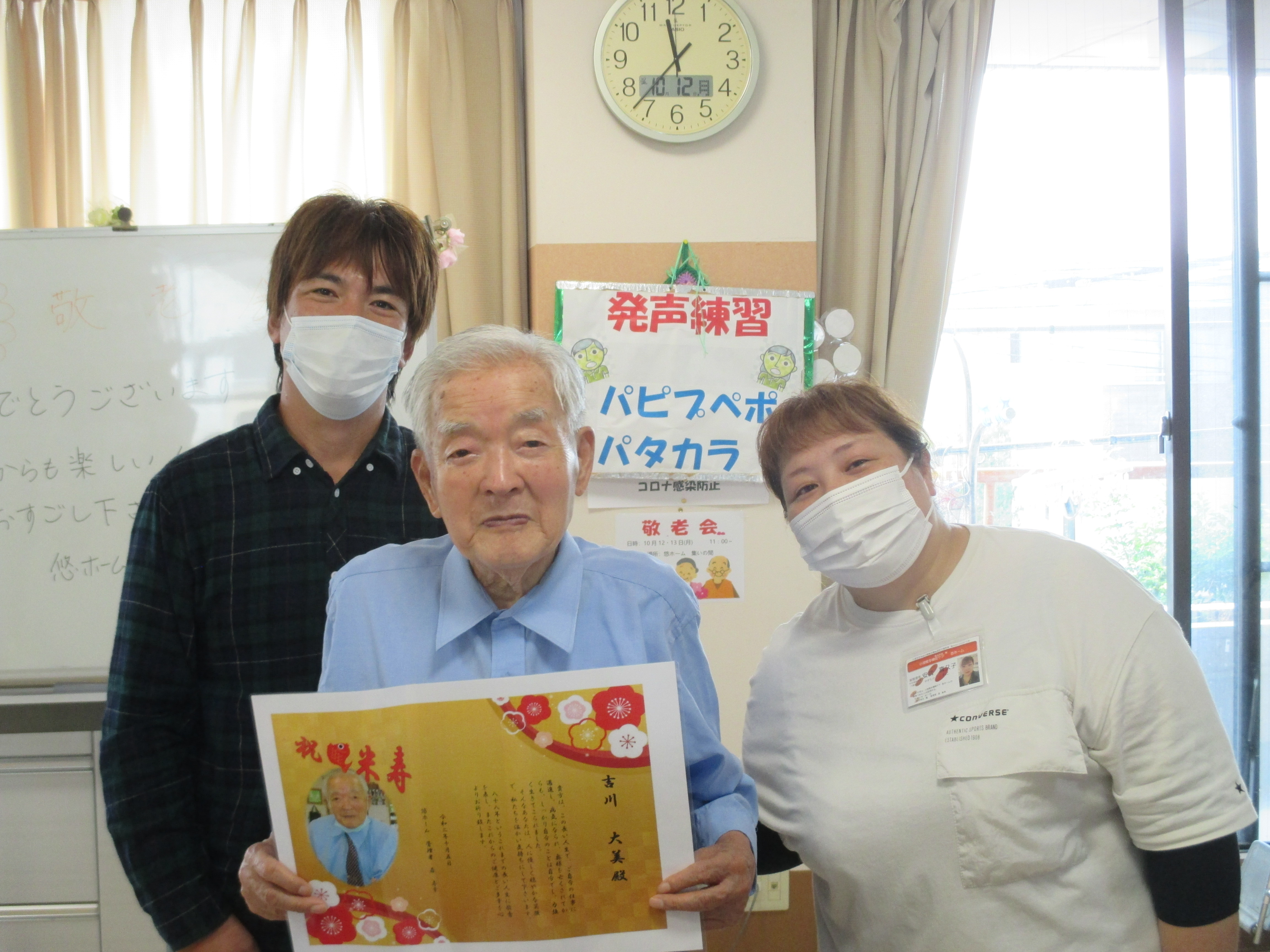 ☆敬老会☆ 悠ホームスタッフブログ 2020年10月13日 kaede-homepage 10月12日と13日で、敬老会を行いました。コロナウィルスの関係で、今年は利用者様とスタッフだけで行いました。悠ホームには、今年は二人の長寿のお祝いの利用者様がいらっしゃいました。いつも元気で、悠ホームをにぎやかにしてくださいます。利用者様と練習した歌も歌いました。『りんごの唄』『上を向いて歩こう』を歌いました。練習のおかげで、みなさんとても上手かったです。昼食は、お弁当です。同じところで注文しましたが、おかずは別のものにしてもらいました。ささやかですが、記念品もあります。石鹸とタオル、におい袋の3点セットです。大変、利用者様うけもよく好評でした。 続きを読む...