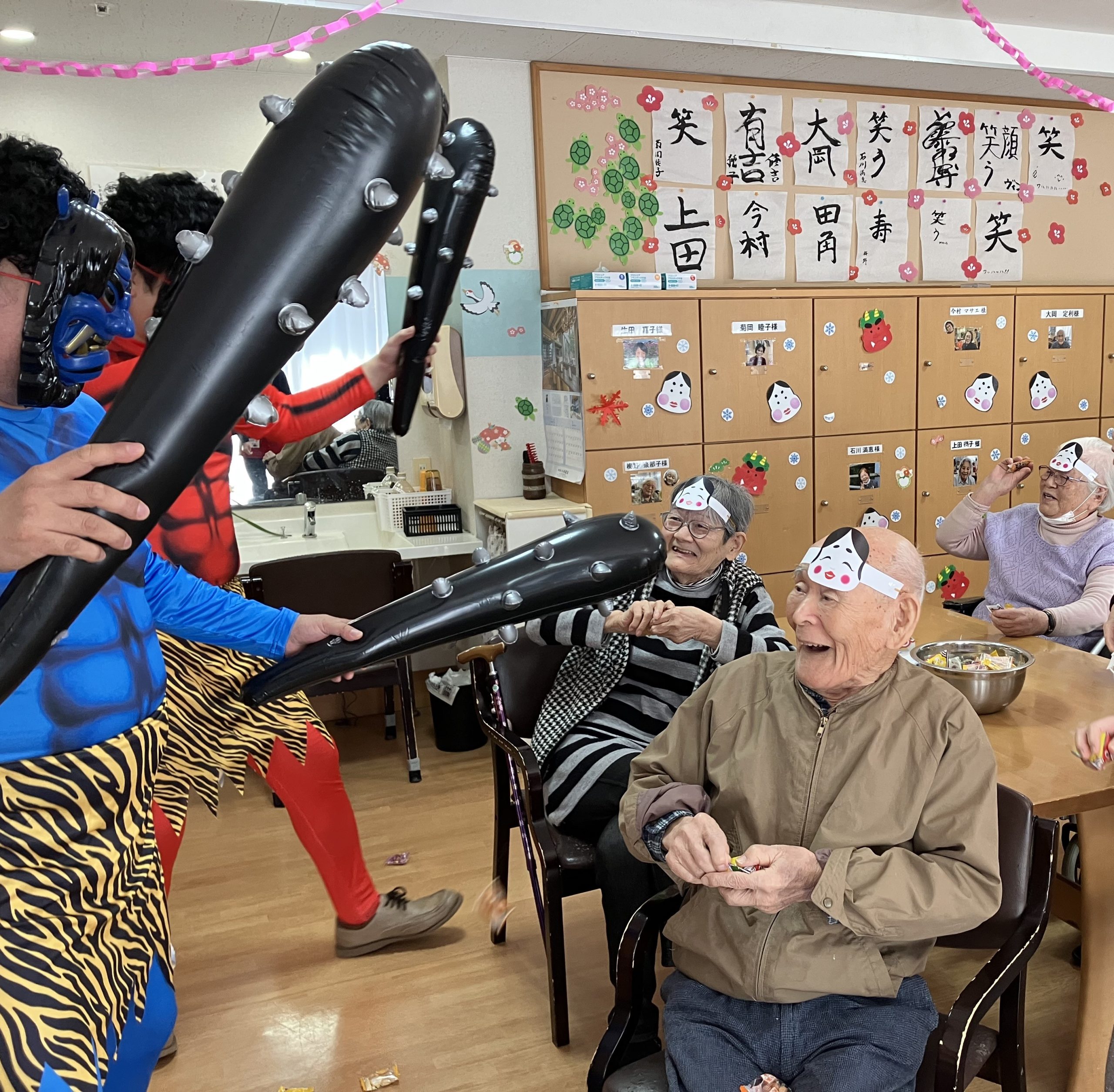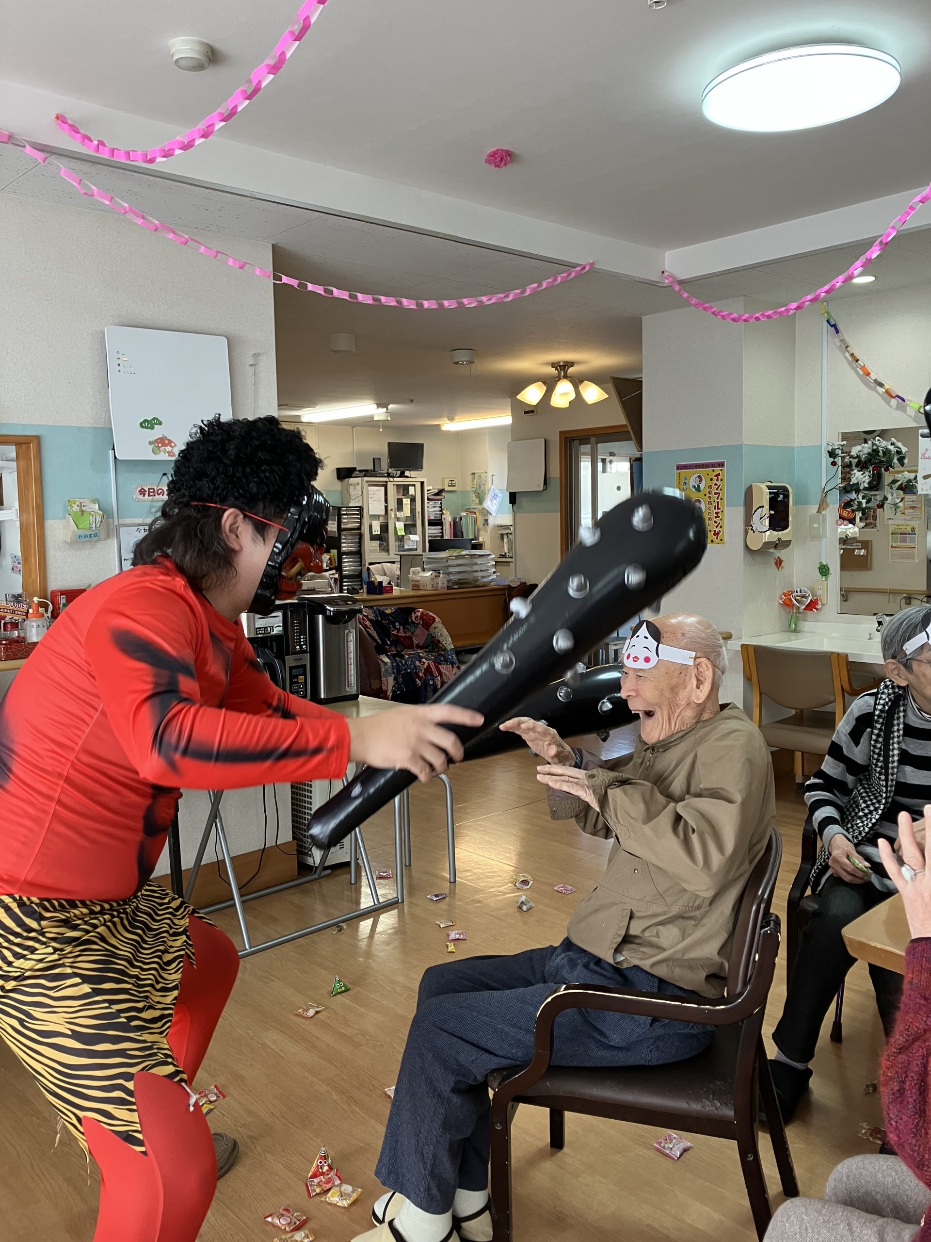 👹節分👹 いずみスタッフブログ 2026年2月5日 kaede-homepage 皆さんこんにちは!福岡市城南区七隈にある、小規模多機能施設のいずみです!2月に入り、開設記念日が終わりすぐに節分行事となりました。飾りつけの模様替えも急ぎ、慌ただしいなか当日を迎え、どうなる事かと心配していましたが・・・ 心配する事もなく、大盛り上がりで皆様持っていた豆を剛速球で鬼に投げていました!これには鬼もビックリで汗びっしょりになりながら逃げて行きました!また来年も鬼退治宜しくお願い致します。 続きを読む...