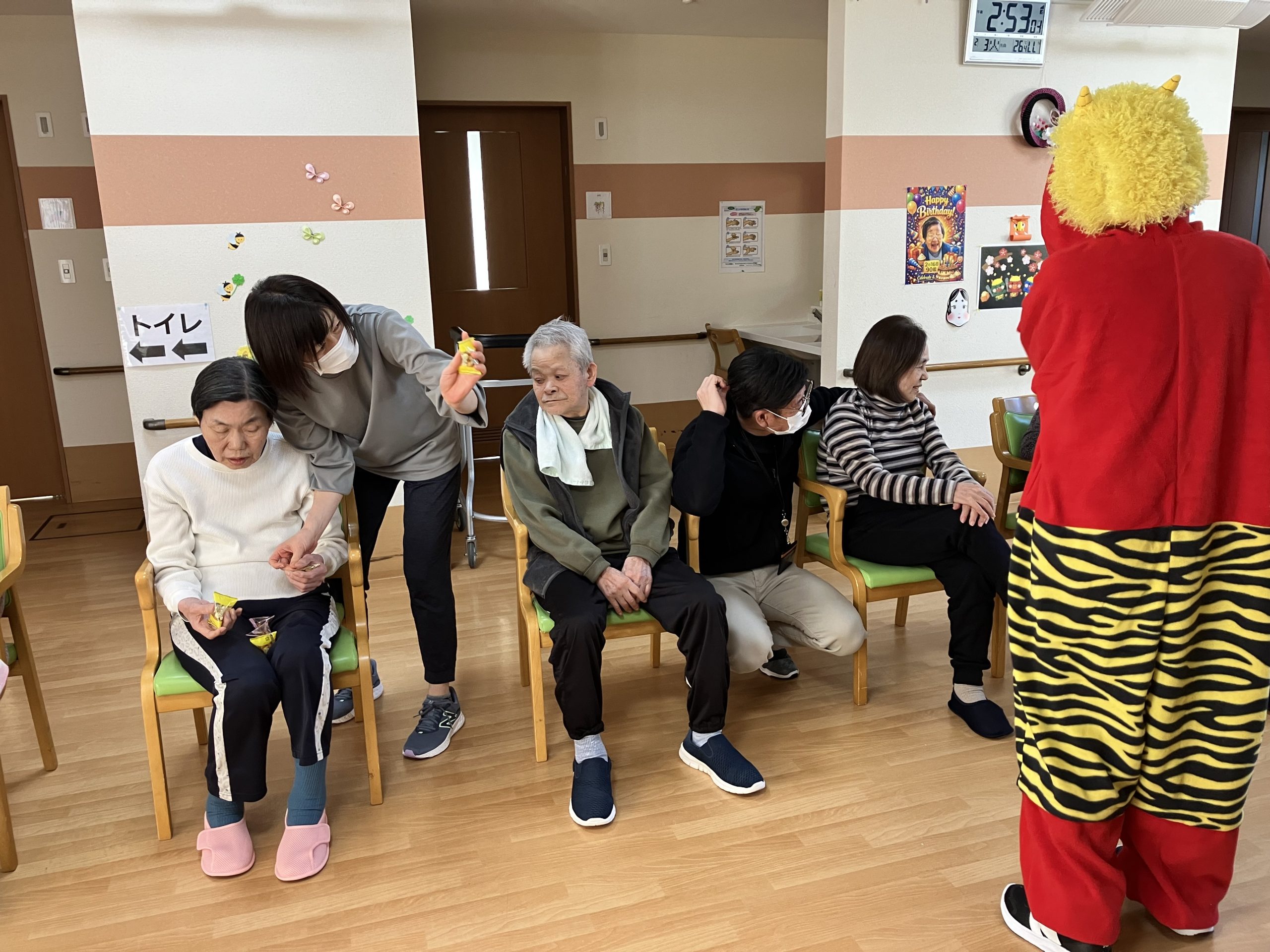 節分👹 いしまるスタッフブログ 2026年2月13日 kaede-homepage こんにちは(*’▽’)雪が降ったかたと思えば、春の気候になったり、風邪を引いてしまいそうですね(*_*;さて、福岡市西区にある『グループホームいしまる』では節分行事を行いました👹今年は可愛い鬼が登場し、豆まき開始(*’▽’)鬼にびっくりされる方もいらっしゃいましたおやつは、ロールケーキを食べられ、にぎやかな日でした入居者の皆様と暖かい春を元気に迎えられるよう、体調に気を付けてまいります 続きを読む...