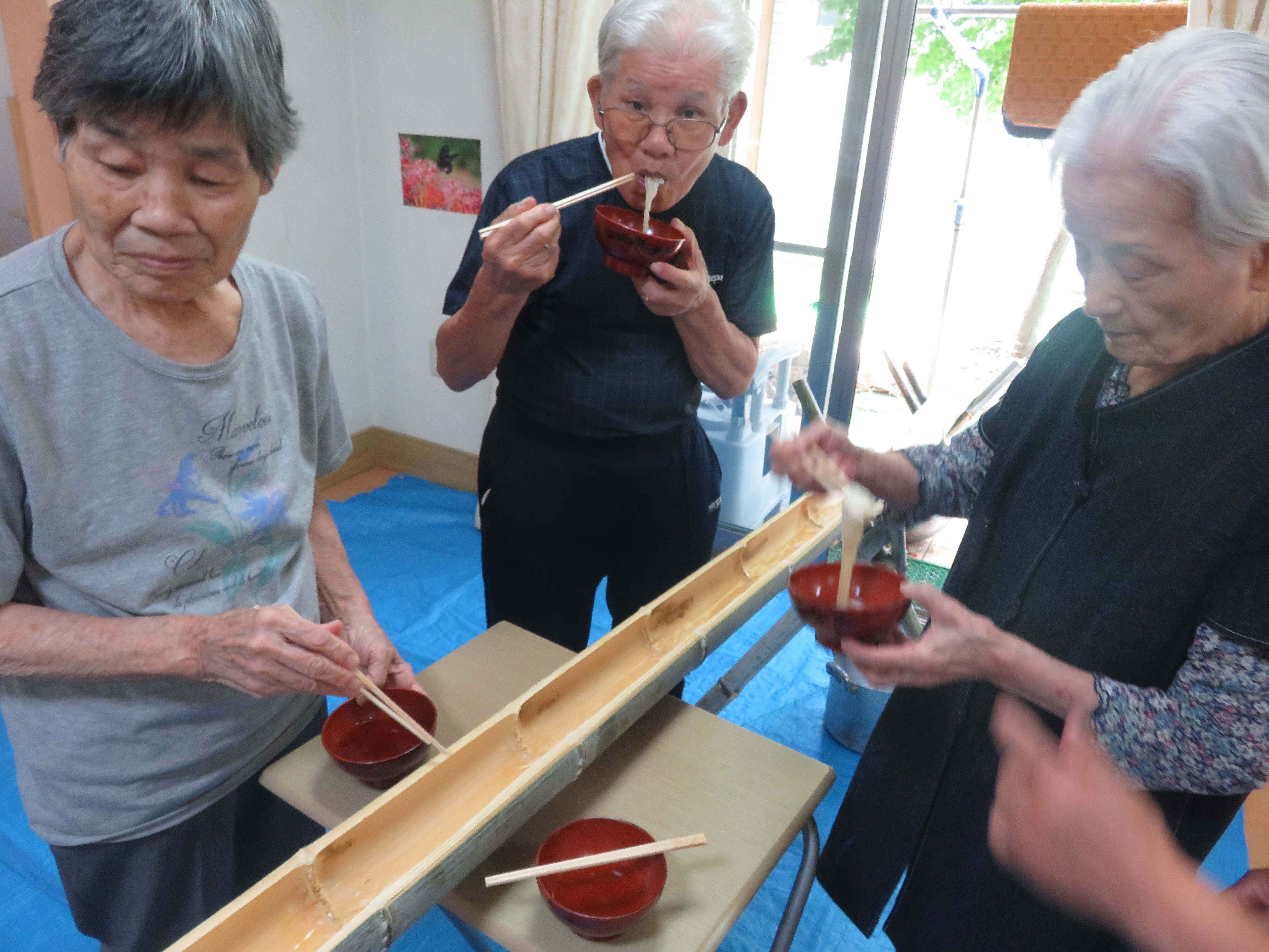 涼を求めて 市の上スタッフブログ 2019年8月13日2019年8月13日 kaede-homepage こんにちは!夏真っ盛りで暑い日が続きますねグループホーム市の上では11日にそうめん流しを行いました竹の上を流れていく水とそうめん そうめんを流す親子 みんなでおいしくいただきました 続きを読む...