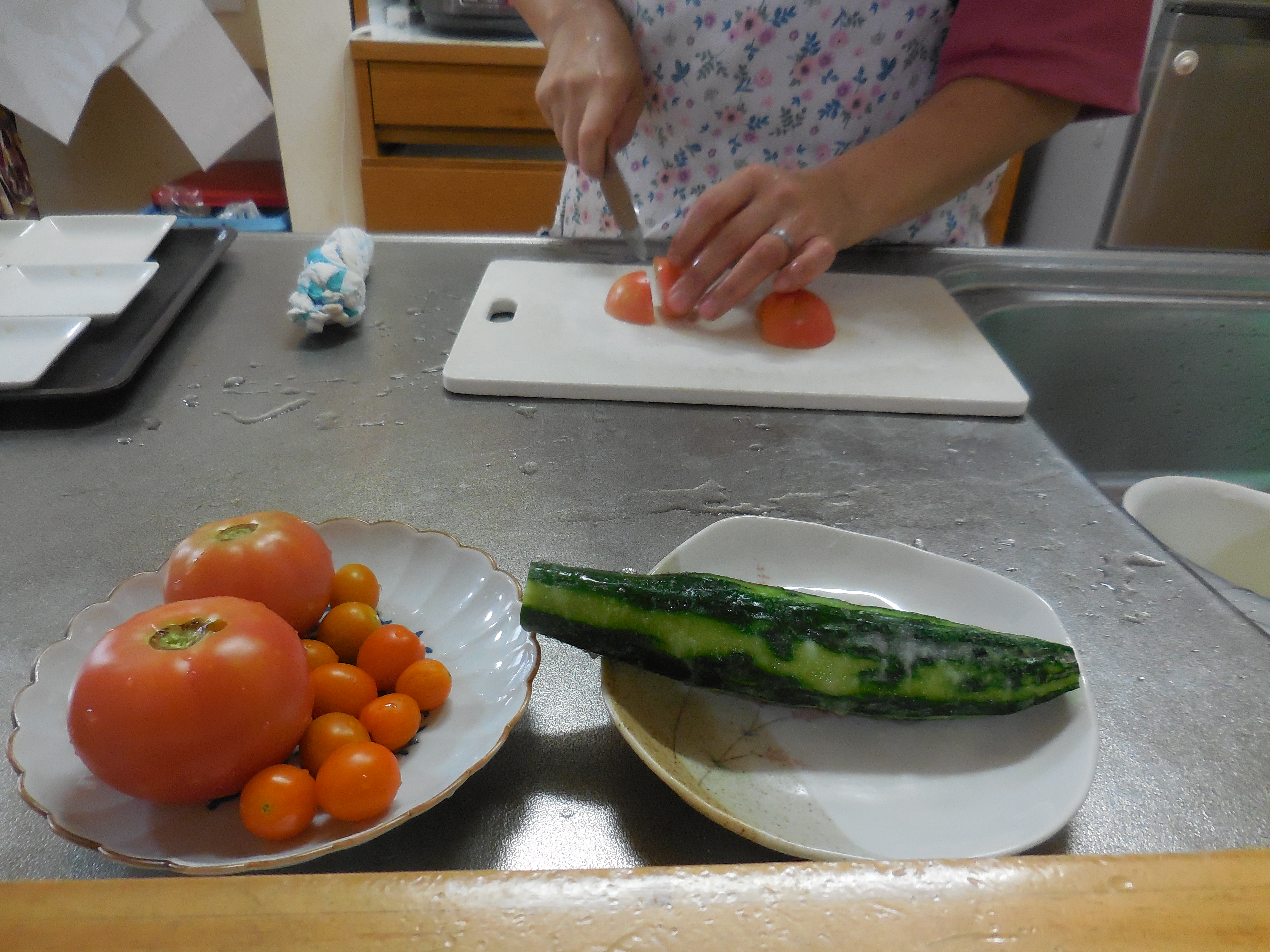 今日の夕食に取れたてのトマトキュウリを頂きました