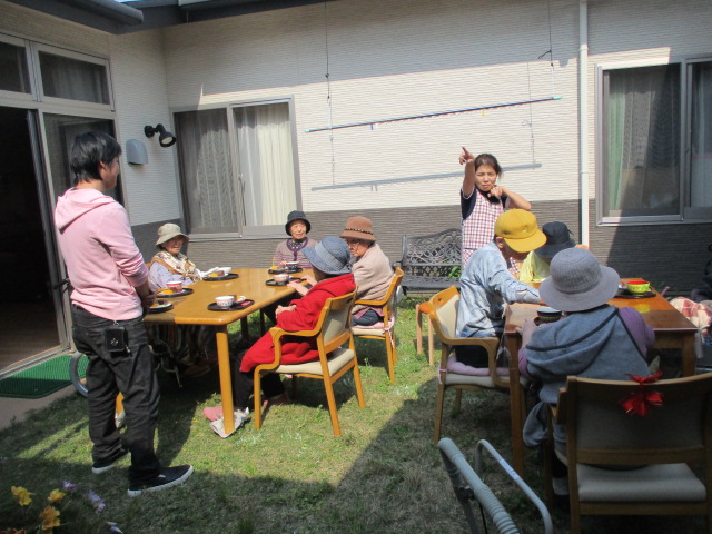 4/8(水)に中庭で🍵お茶会🍡を開催しました!