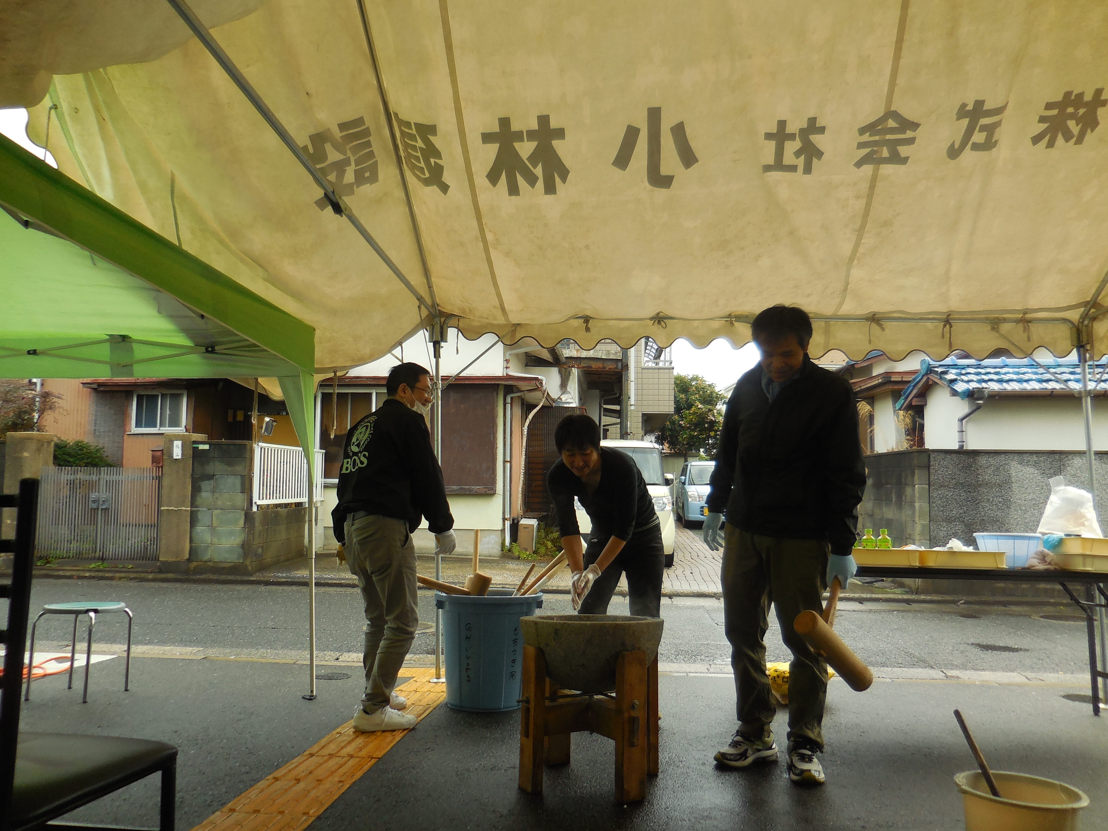 何とか雨も降らず、無事に皆でおもちをつくことができました