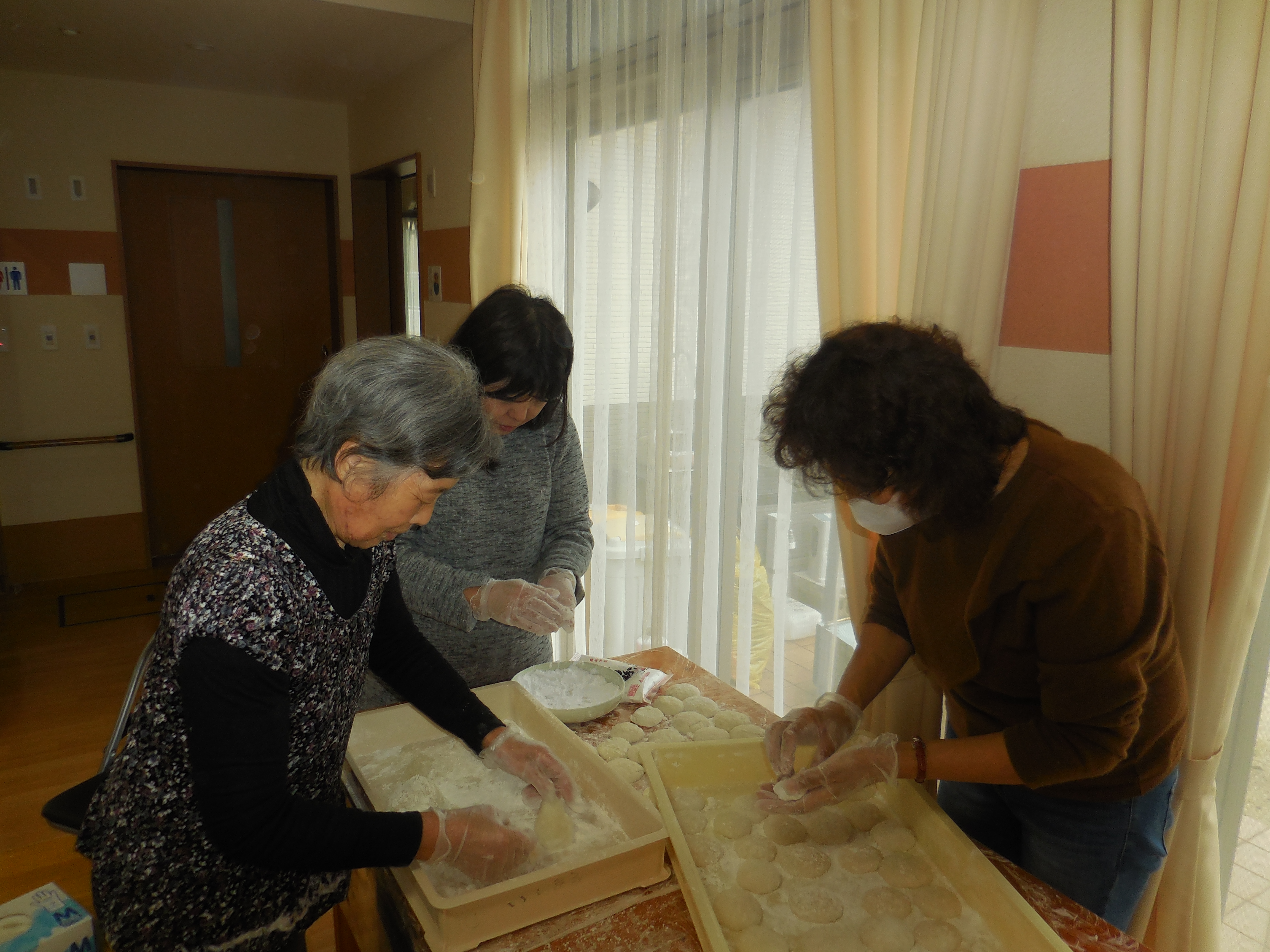 おもちを丸めて、あんこをいれて、さすが、皆様手際が素晴らしいです