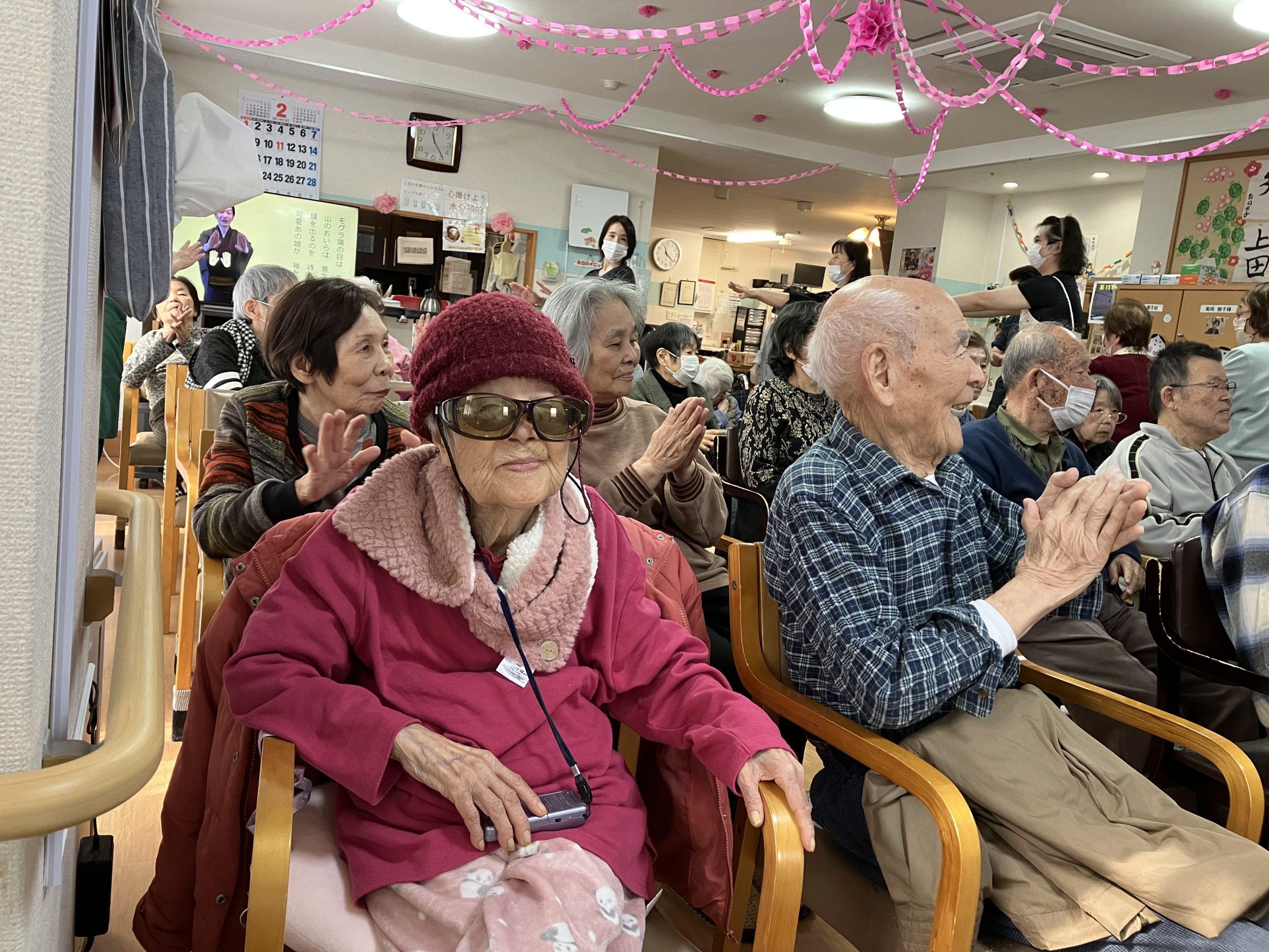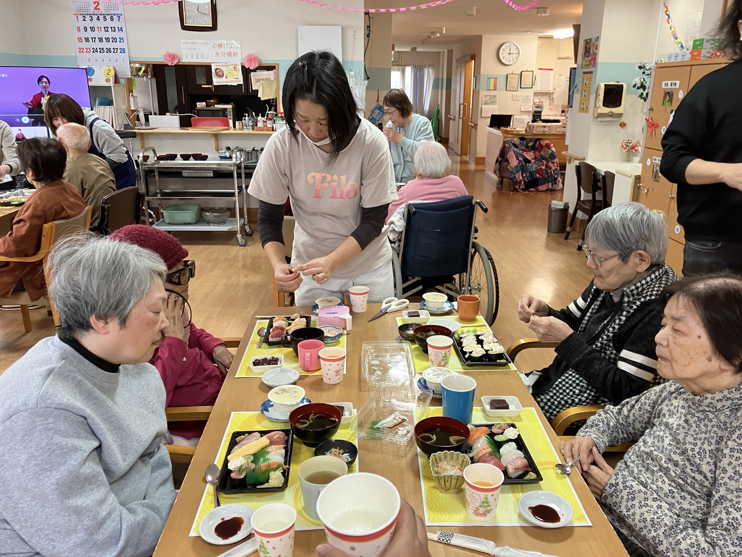 お寿司を召し上がり、歌い踊るスタッフと利用者様全員の手拍子で盛り上がり、楽しい時間を過ごせました!