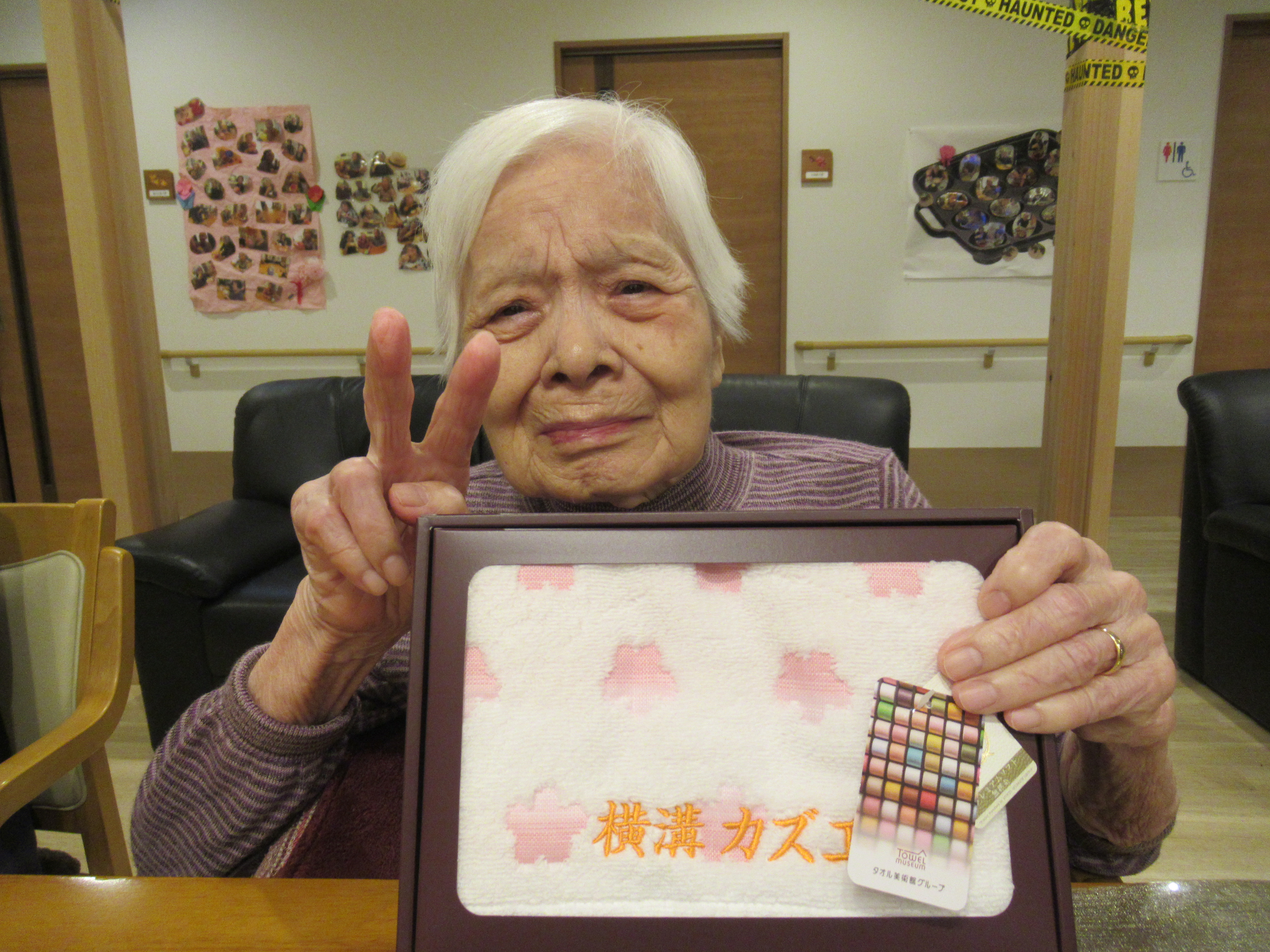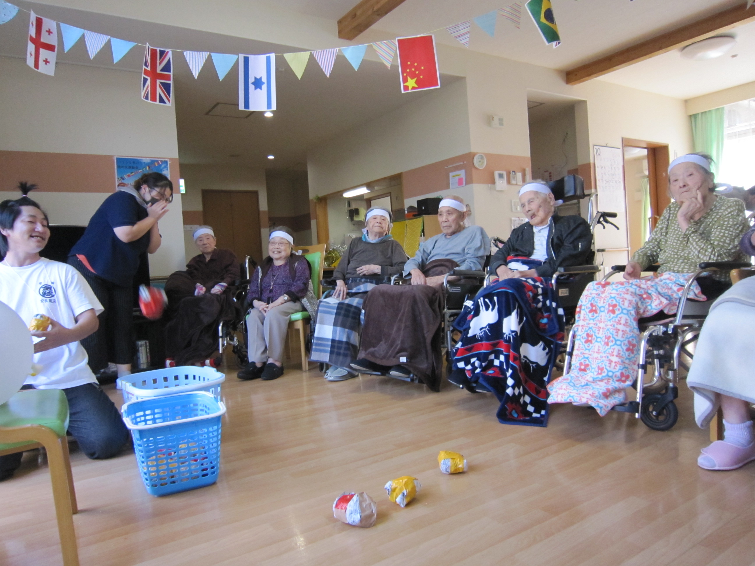 ハロウィンの時期になりましたので雰囲気を楽しんでもらえるように飾りを付けたり、おやつ時にドーナツを食べていただきました。皆さん美味しそうに食べていました