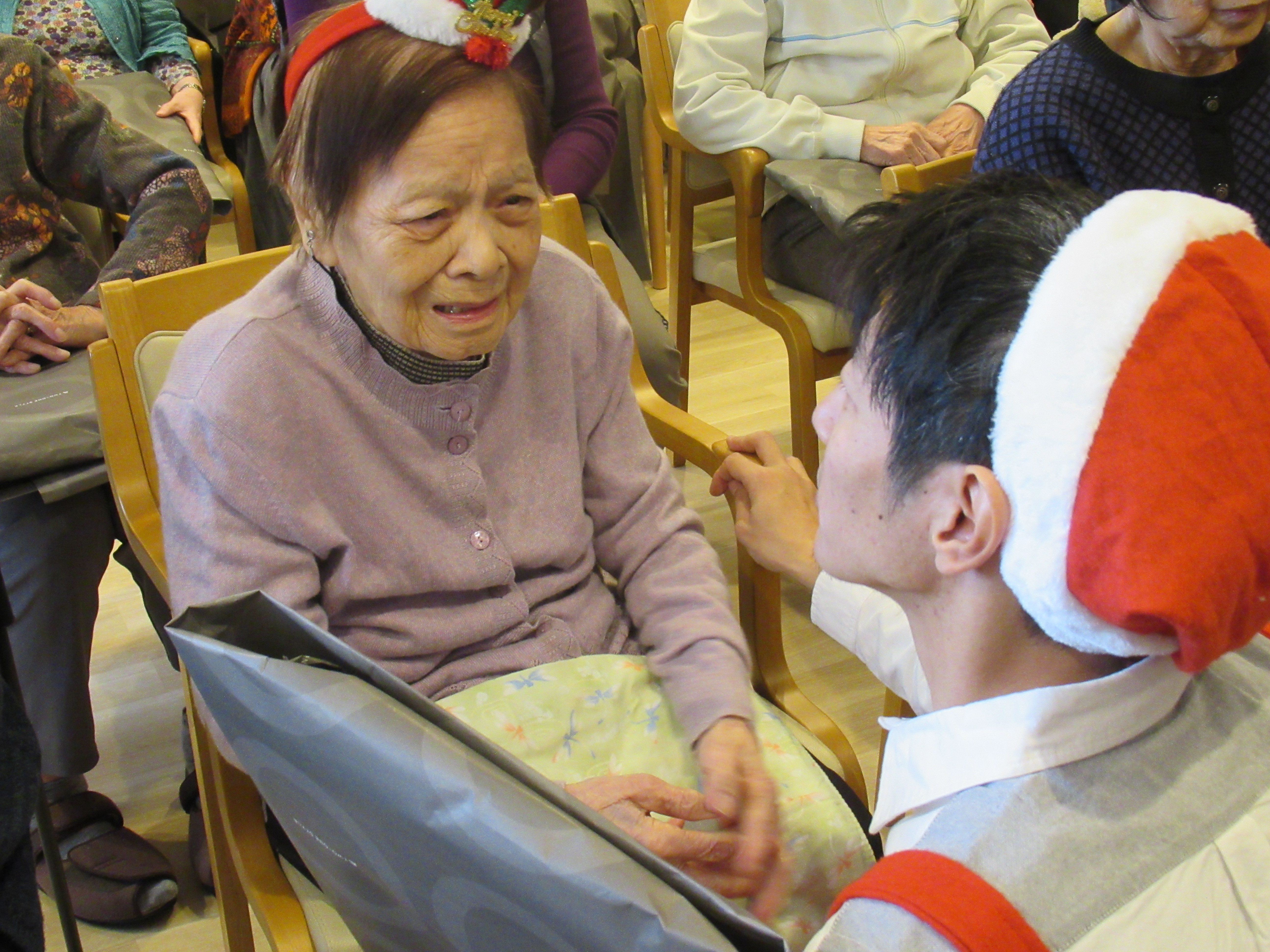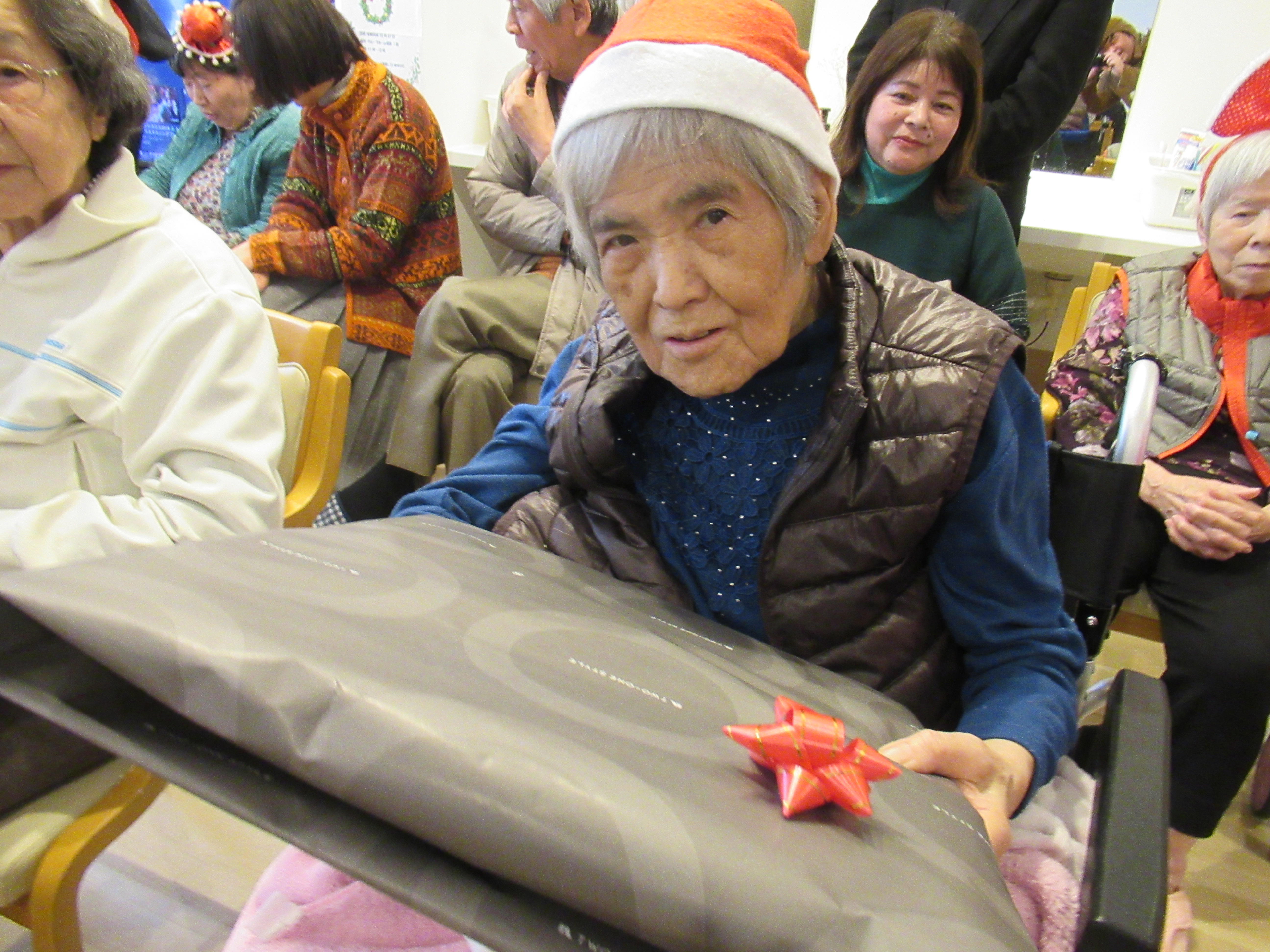 クリスマス会は、施設長がサンタにふんして入居者様・利用者様にプレゼントを