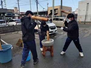 本格的な寒さの到来で、身も心も縮こまりそうな日が続きますが、寒さに負けず12月27日餅つきを行ないました。