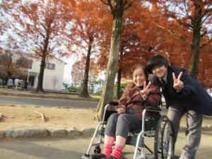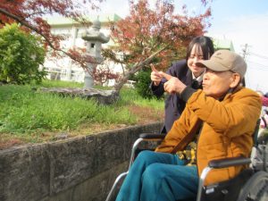 車椅子を押してもらいながら、会話を楽しみ目を細めている入居者様を見ることが出来てスタッフもほっこりでした
